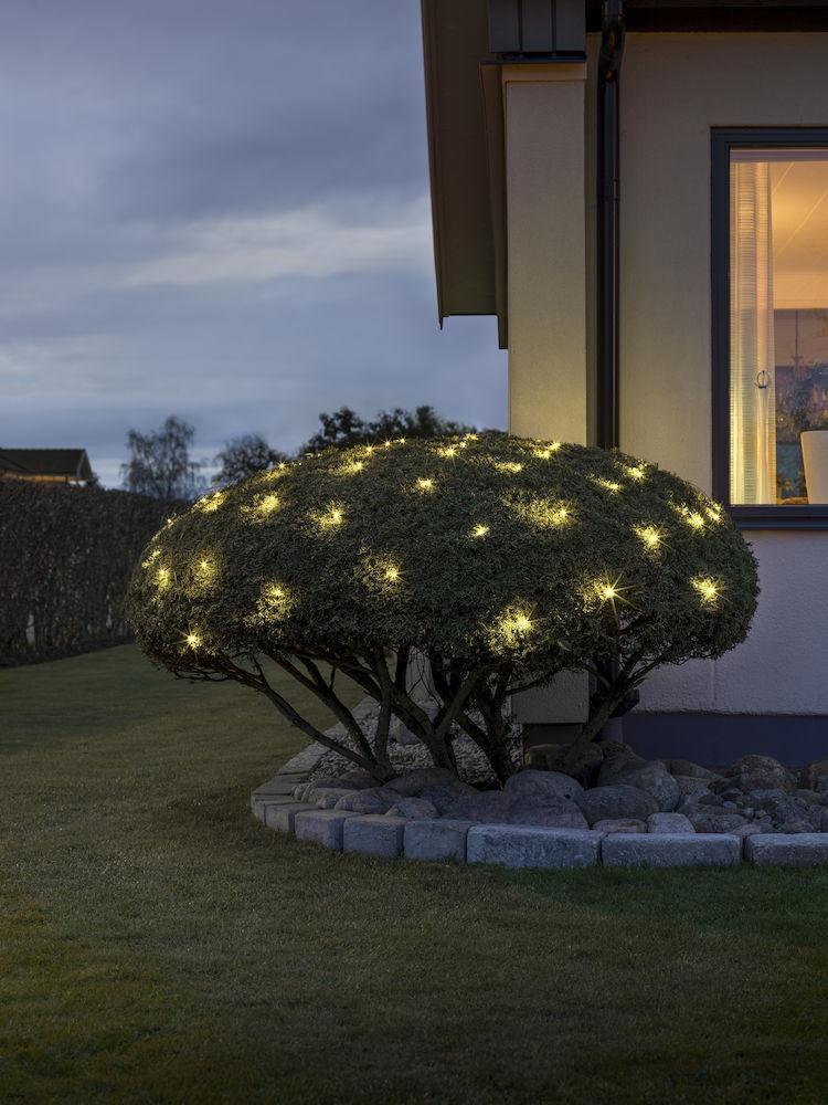 Nett 2 x 2 m 64 varmhvite LED, frostet tupp. Sort kabel.